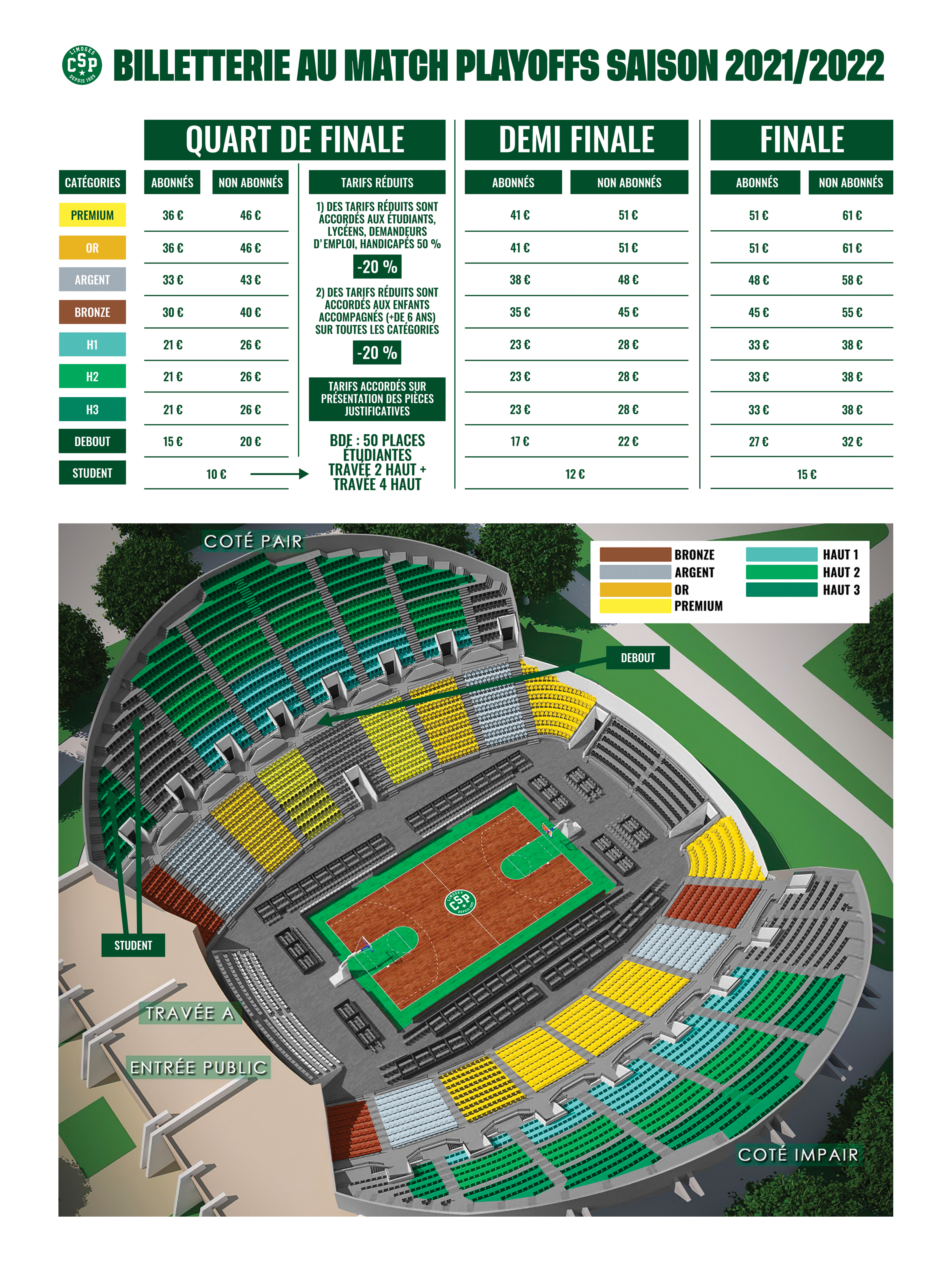 - sur notre billetterie en ligne : www.limogescsp.com (inscrire le N°abonné dans l’onglet code de réduction pour bénéficier du tarif abonné)